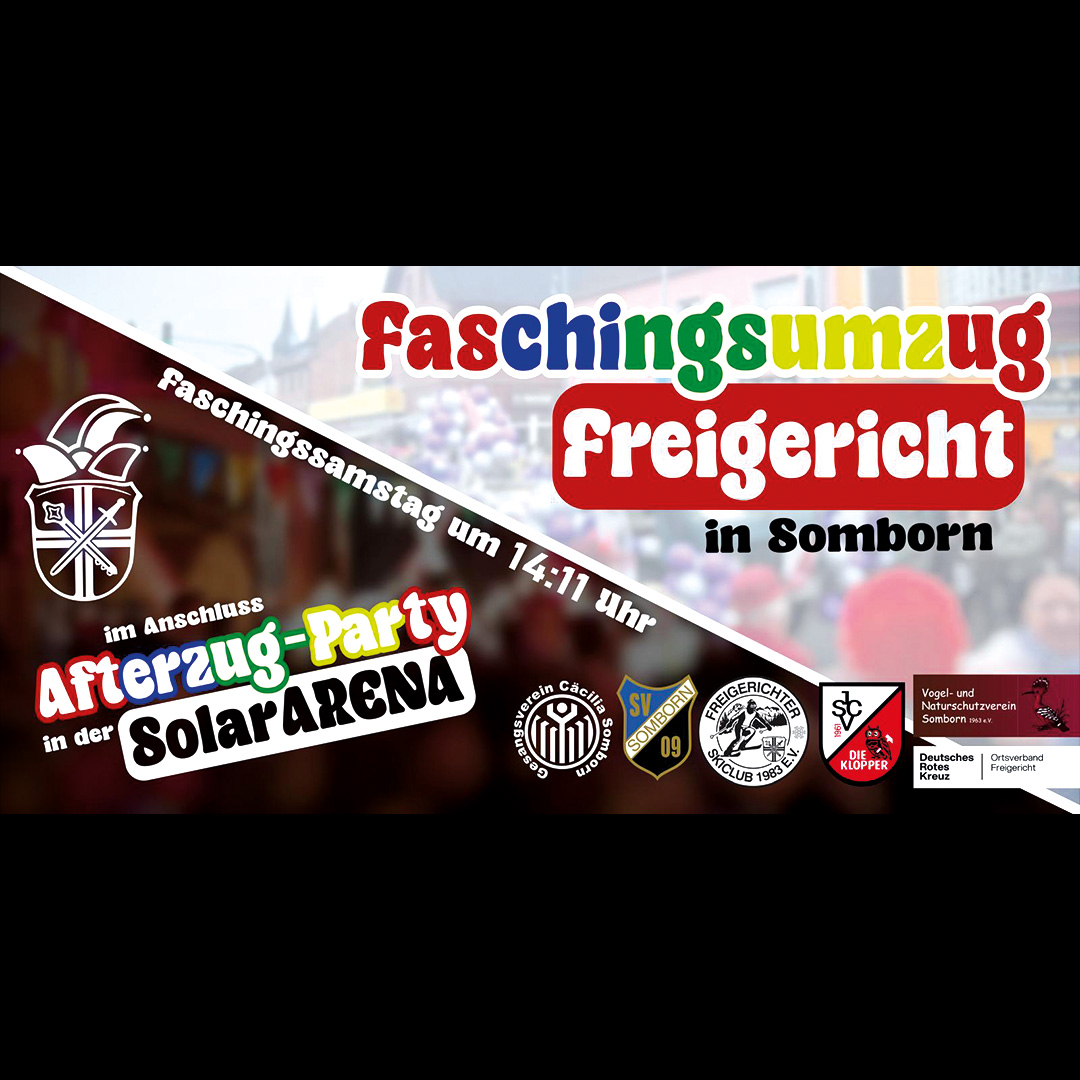Feiert mit uns die Afterzugparty in Somborn mit fetten Beats, kühlen Drinks und ausgelassener Karnevalsstimmung.